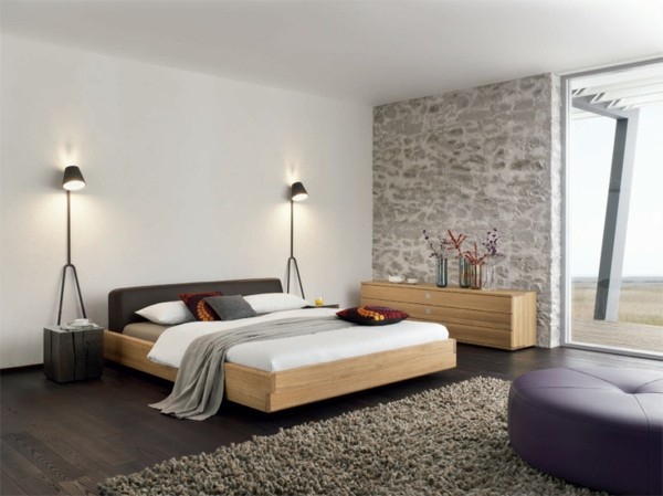 Cuarto moderno cama madera