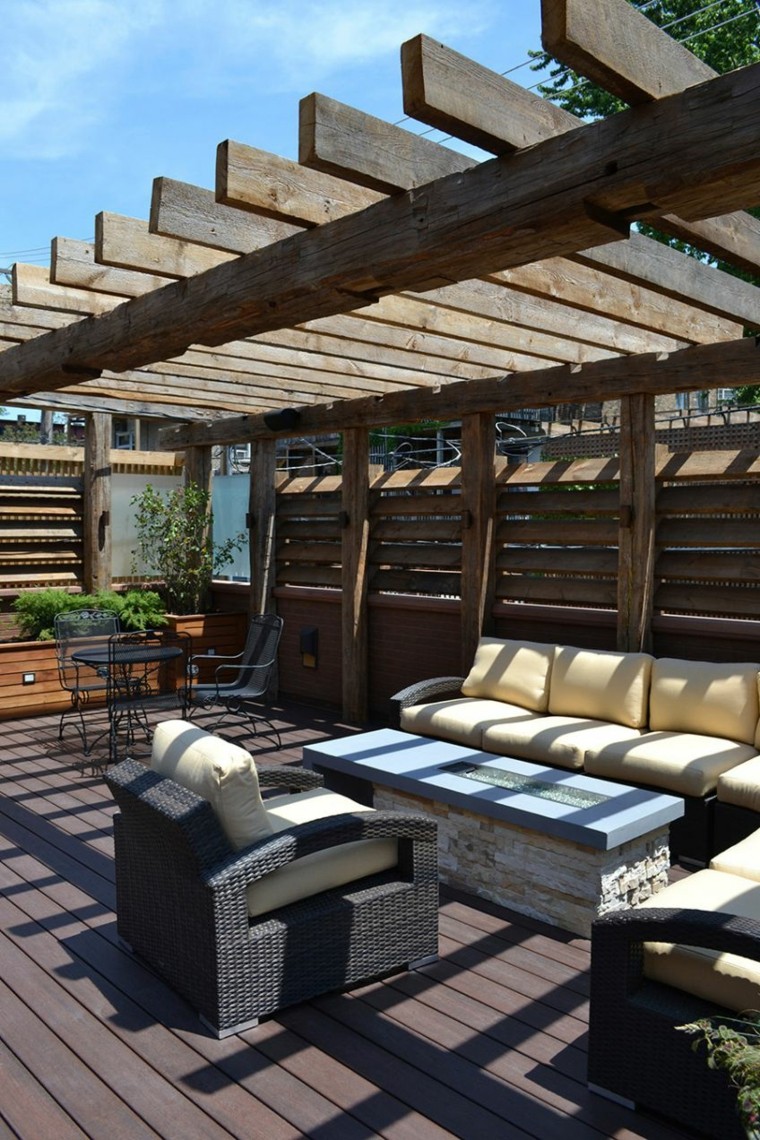 Pergola madera esquina sillones