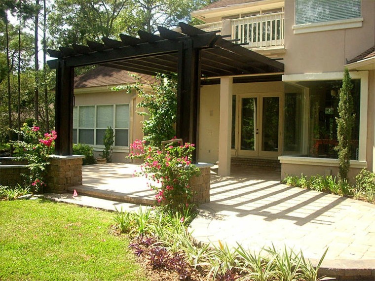 Pergola porche madera oscura