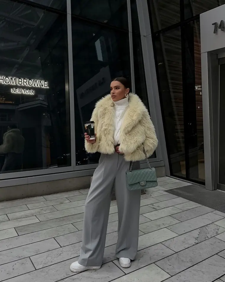 El pelo sintético vuelve con fuerza esta temporada, ya sea en abrigos completos o como detalles en puños o cuellos, brindando un look lujoso y elegante, perfecto para ocasiones especiales.